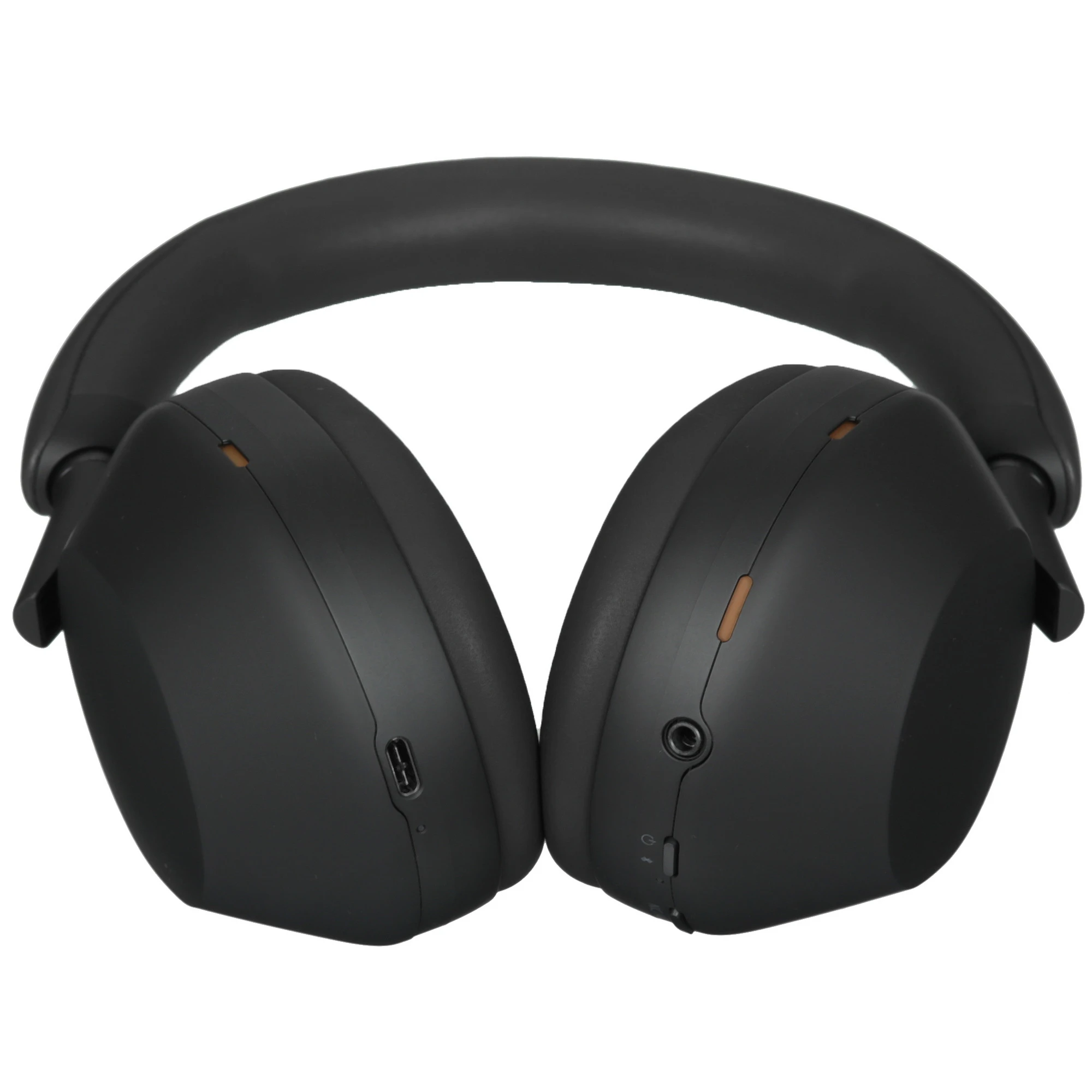Наушники Sony WH-1000XM5 представлены в корпусе черного цвета. Накладная конструкция с регулируемым оголовьем, поворотными чашами и мягкими амбушюрами из экокожи обеспечивает комфорт в эксплуатации. Соединение с устройствами возможно по беспроводному интерфейсу Bluetooth 5.2 в радиусе 10 м и отсоединяемому кабелю длиной 1.5 м с разъемом jack 3.5 мм. На корпусе расположены сенсорные кнопки для управления уровнем громкости, активации голосового ассистента и паузы, принятия и отклонения звонков касаниями. Одного заряда аккумулятора хватает до 40 часов автономной работы наушников в беспроводном режиме. Поддерживается функция быстрой зарядки.