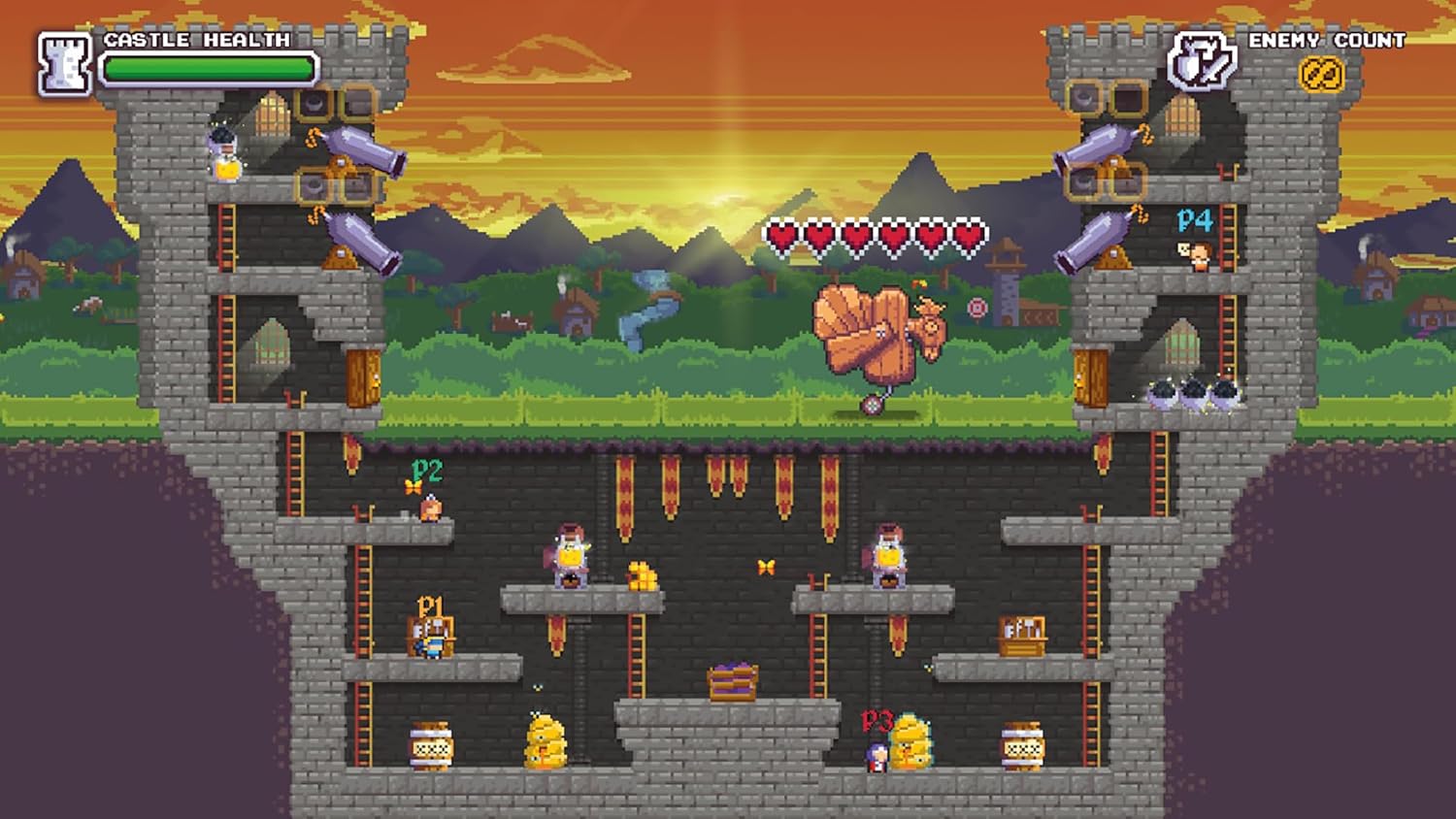 No Heroes Here - это суматошная кооперативная игра для одного-четырёх игроков. Координация и сотрудничество - вот ваше главное оружие для достижения успеха: каждый должен сыграть свою роль в предстоящих сражениях и работать вместе, как одна команда, чтобы защитить замки и королевство от неминуемой гибели.